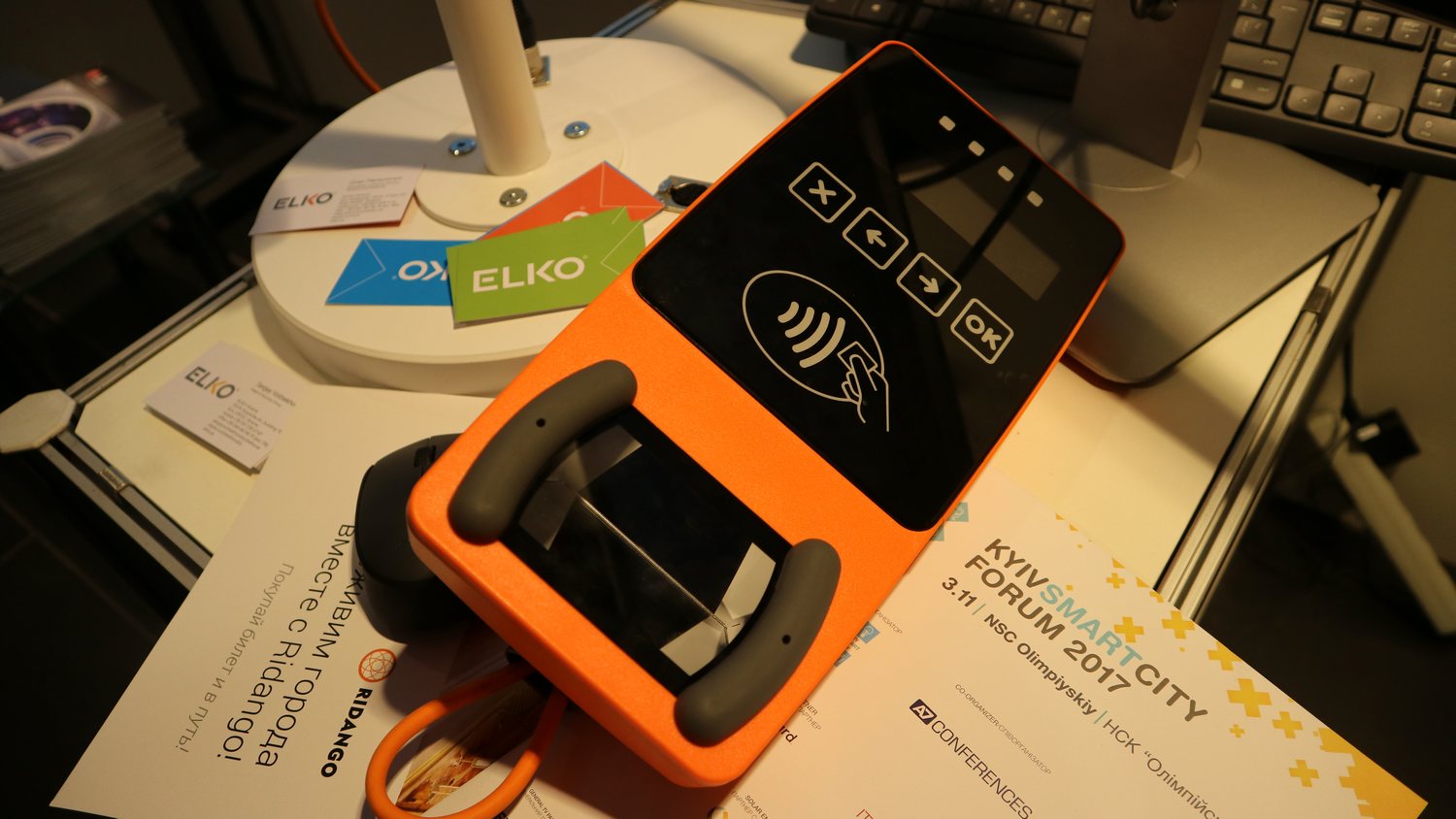 Кличко під час виступу також продемонстрував валідатор для безконтактної оплати картами, якими планується оснастити всі види транспорту до кінця 2018 року.