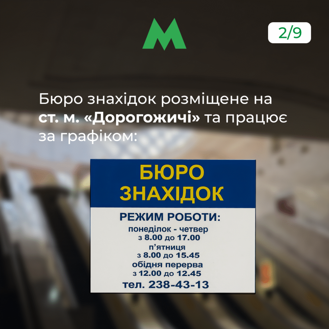 Як нагадують у КП «Київський метрополітен», бюро знахідок розташоване на станції метро «Дорогожичі» та працює за таким графіком: