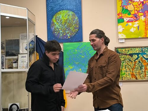 На виставці представлено 30 картин 16-річного (але вже добре відомого в Україні та закордоном) киівського абстракціоніста Danylo Nozdria, наймолодшого члена ОМХМ Національної Спілки художників України, лауреата Національної премії «Скарб нації» (2024). Це вже ХХХ (!) персональна експозиція юного автора.