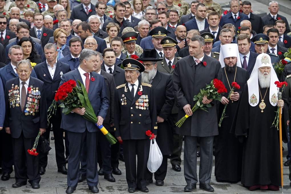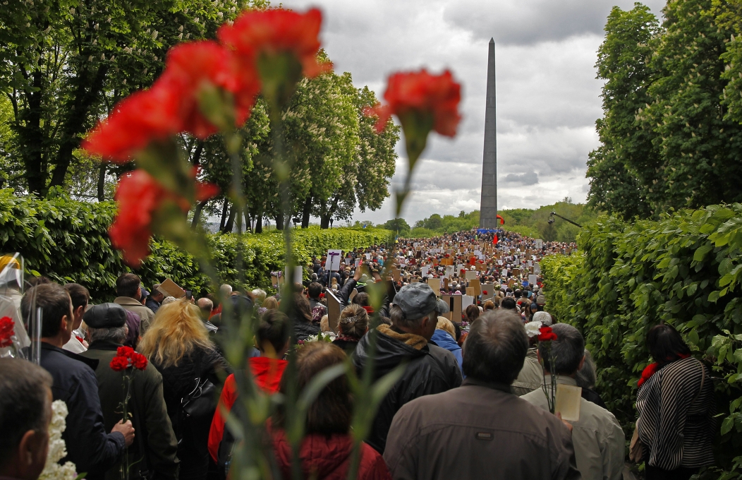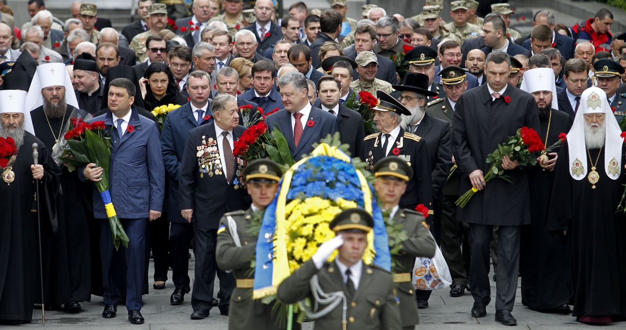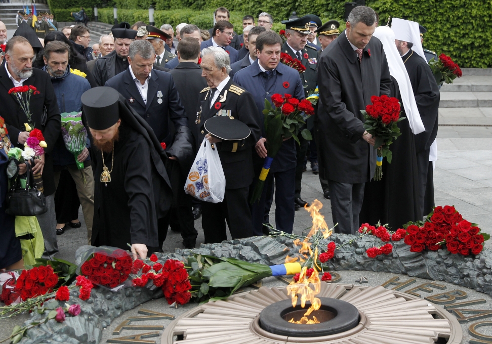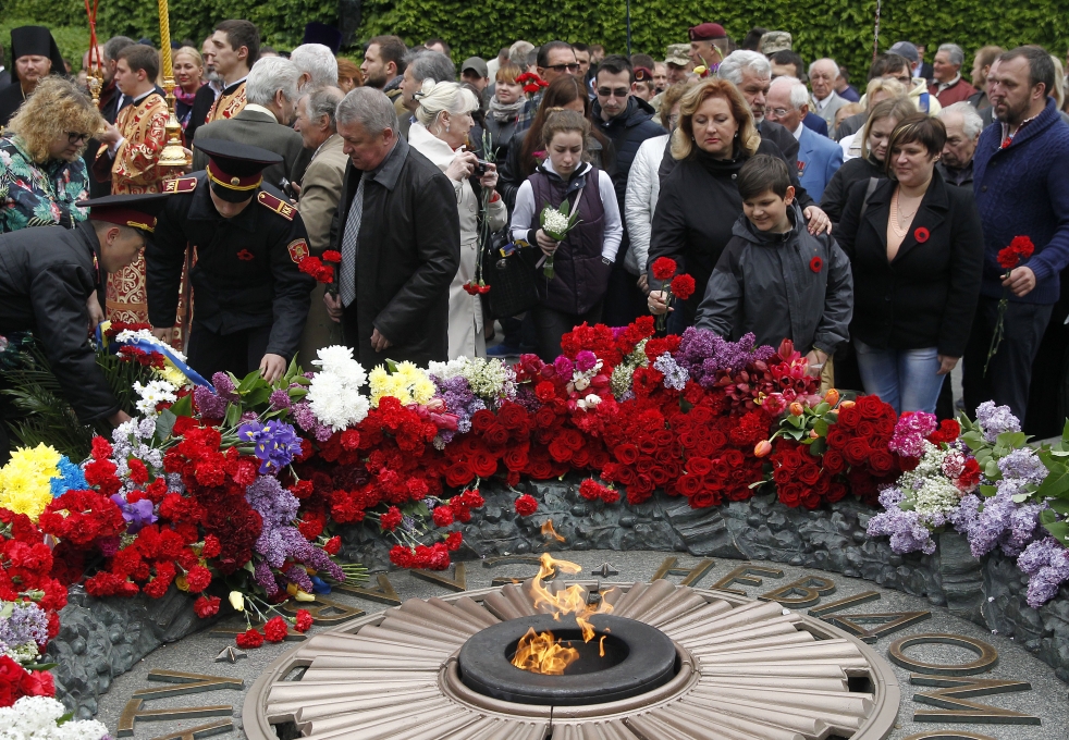 У церемонії вшанування пам’яті загиблих з нагоди 72-ї річниці Перемоги над нацизмом у Другій світовій війні, що відбулася у Парку Слави, взяли участь ветерани, президент Петро Порошенко, мер Києва Віталій Кличко та інші урядовці.