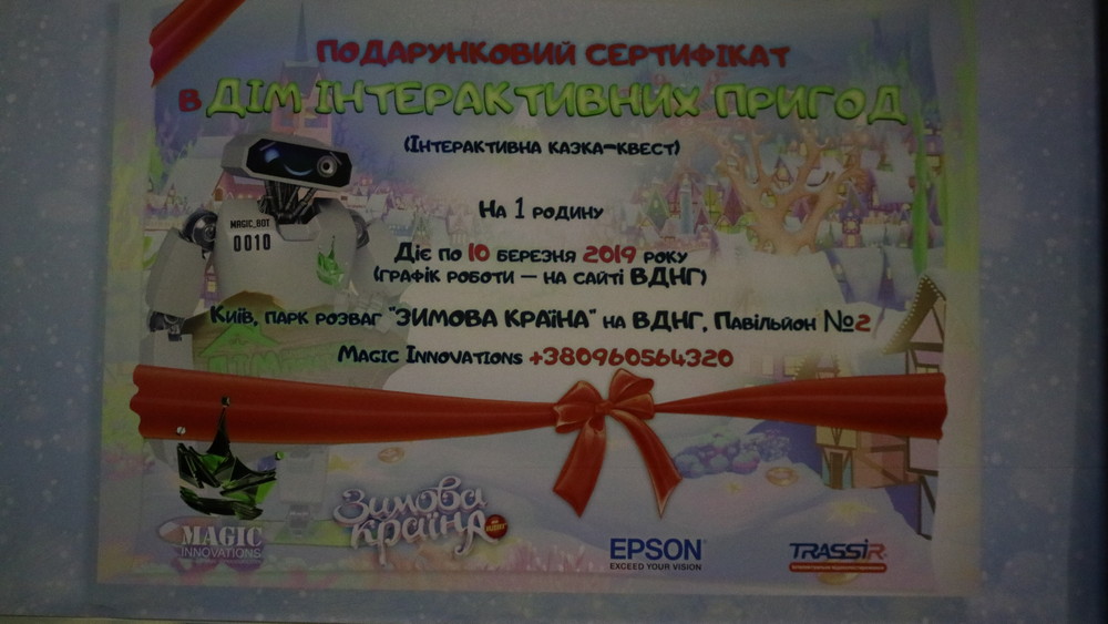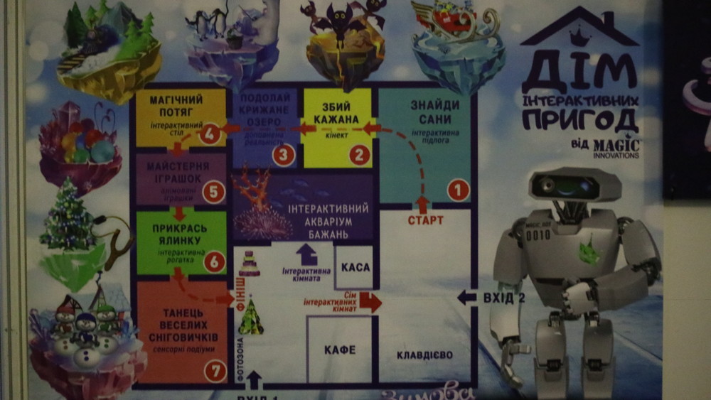 У популярному серед киян парку розваг «Зимова країна» на ВДНГ відкрився перший в Україні масштабний дитячий інтерактивний проект «Дім інтерактивних пригод». Казка-квест для дітей, у якій реальні події переплітаються з 3D-проекціями, та голограмами, створена з метою показати, які технології вже доступні в Україні та як вони можуть бути використані у різних сферах.