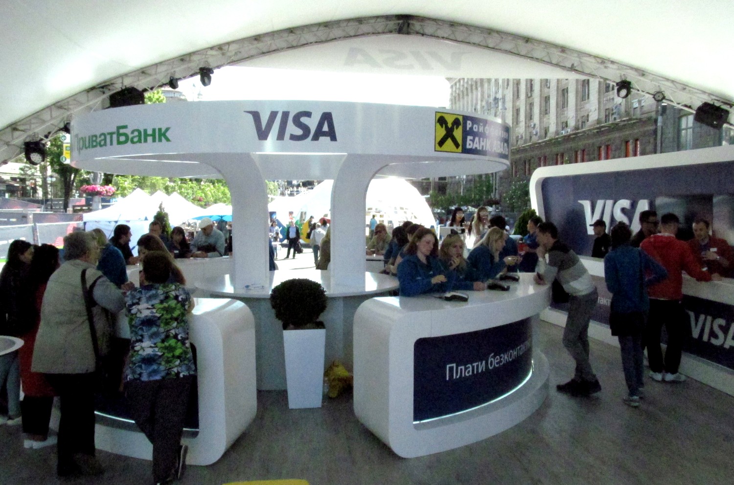 На всій території містечка не діятиме готівкова оплата товарів і послуг. Розрахуватися можна буде онлайн або за допомогою терміналів для безконтактної оплати від спонсора Євробачення – VISA. До речі, у містечку працює великий стенд від представників найбільших українських банків, які прямо на місці оформляють картки VISA з логотипом Євробачення. Тут же можна зробити безкоштовне фото на пам’ять.