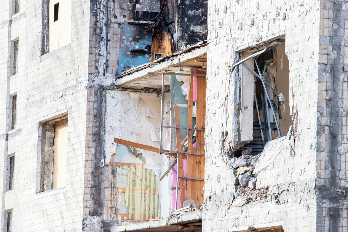 За його словами, найбільше вибухом пошкодило три під’їзди – там вигоріли квартири, шахти ліфтів та були пошкоджені конструктивні елементи. Цю частину будинку відновлять фахівці КП «Житлоінвестбуд-УКБ».