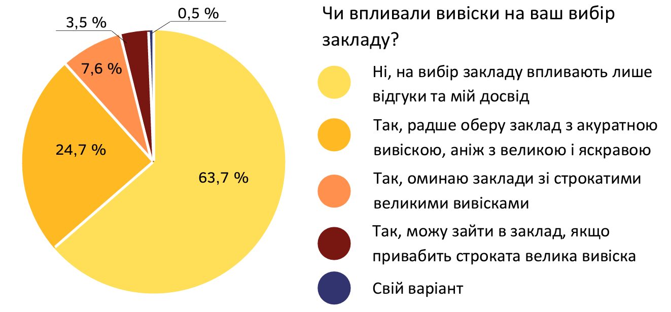 В результаті ухвалених змін встановлено вимогу до мінімальної відстані між вивісками для одного власника. Раніше така норма була відсутня, що давало власникам можливість розміщувати будь-яку кількість вивісок на фасаді свого закладу. В додаток до цього, внесеними змінами встановлено, що розміщення вивісок на фасадах будівель-пам’яток культурної спадщини, допускається виключно у вигляді окремих літер без пласкої основи, кронштейнів, маркіз.