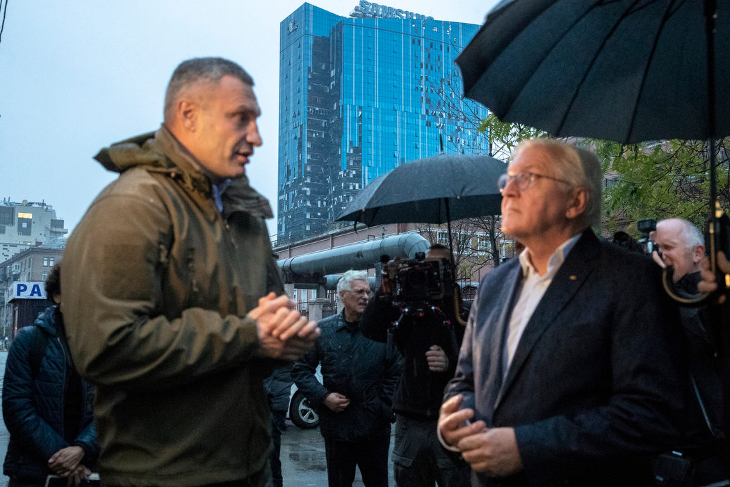 Мер Києва Віталій Кличко показав президенту Німеччини Франку-Вальтеру Штанмаєру, який прибув до України, наслідки терористичних атак росії в центрі Києва. Про це Віталій Кличко повідомив у своєму Telegram-каналі.
