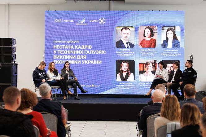 «Через армію Україна існуватиме, а економічно виживе — через профтех. Короткі практичні програми, пов’язані з потребами підприємств, — найкоротший маршрут до зростання продуктивності», — заявив президент KSE Тимофій Милованов, відкриваючи дискусію.