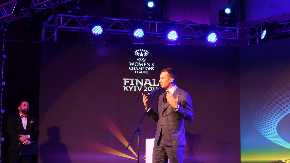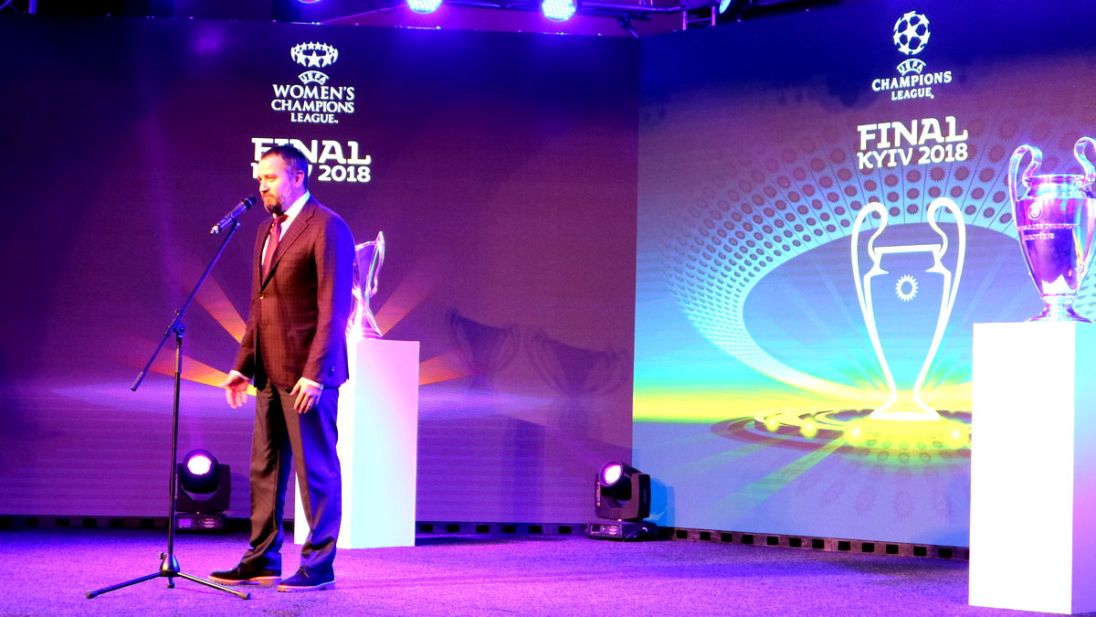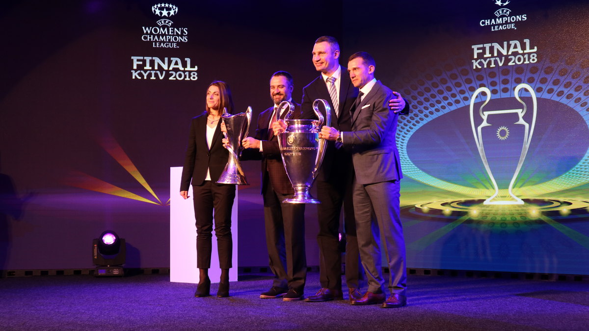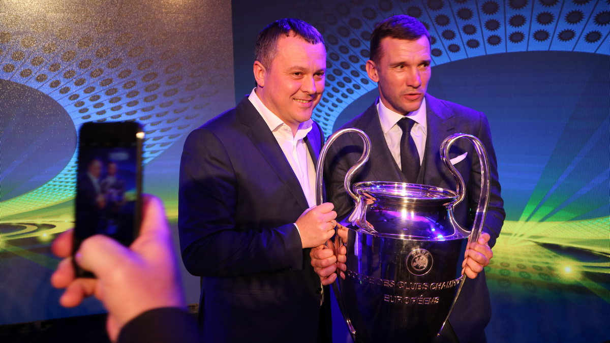 На презентації виступили президент Федерації футболу України Андрій Павелко, мер Києва Віталій Кличко та головний тренер збірної України та славетний футболіст Андрій Шевченко. Саме він зворушив усіх присутніх тим, що одразу попросив поцілувати Кубок.
