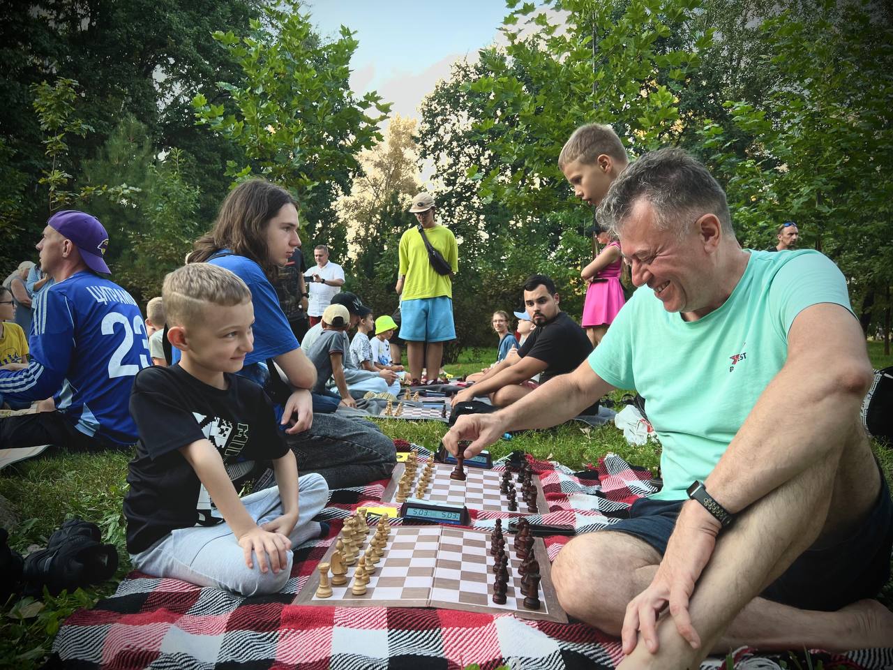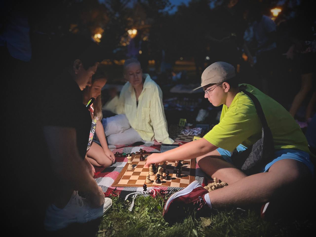 Останній з них зібрав найбільшу кількість учасників, учасники грали на 23 шахівницях. І це був вечір буднього дня. І дійсно, учасники грали просто на траві парку. До юних учасників долучилися шахісти зі стажем, та навіть майстри спорту.