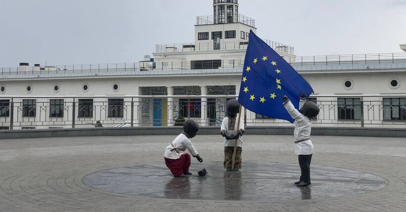 “Друзі, з днем Європи! Віримо, що Україна повернеться до своєї великої Європейської родини і стане частиною Євросоюзу”, – написав автор скульптурної композиції Володимир Журавель.