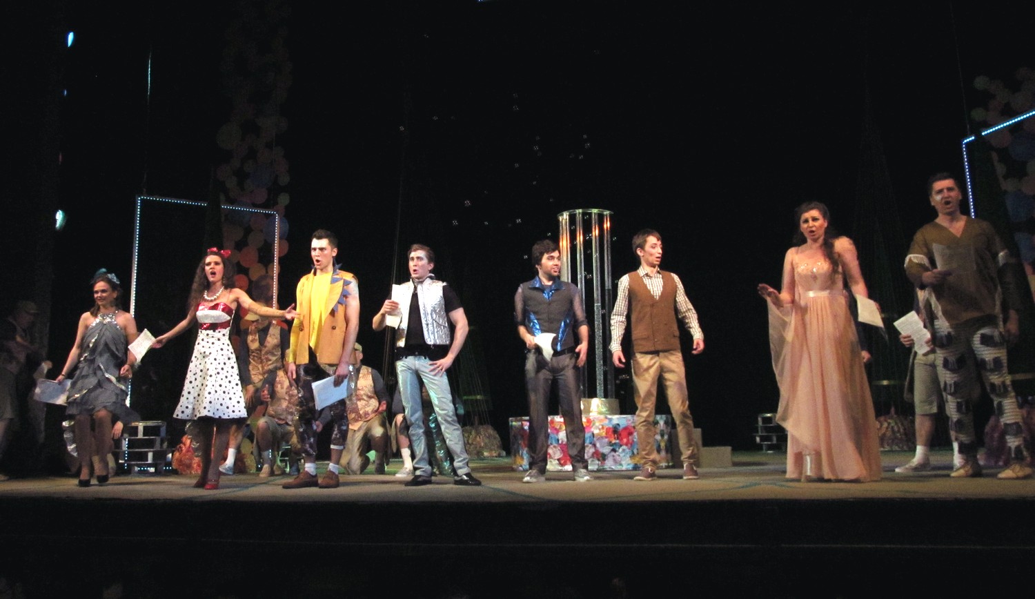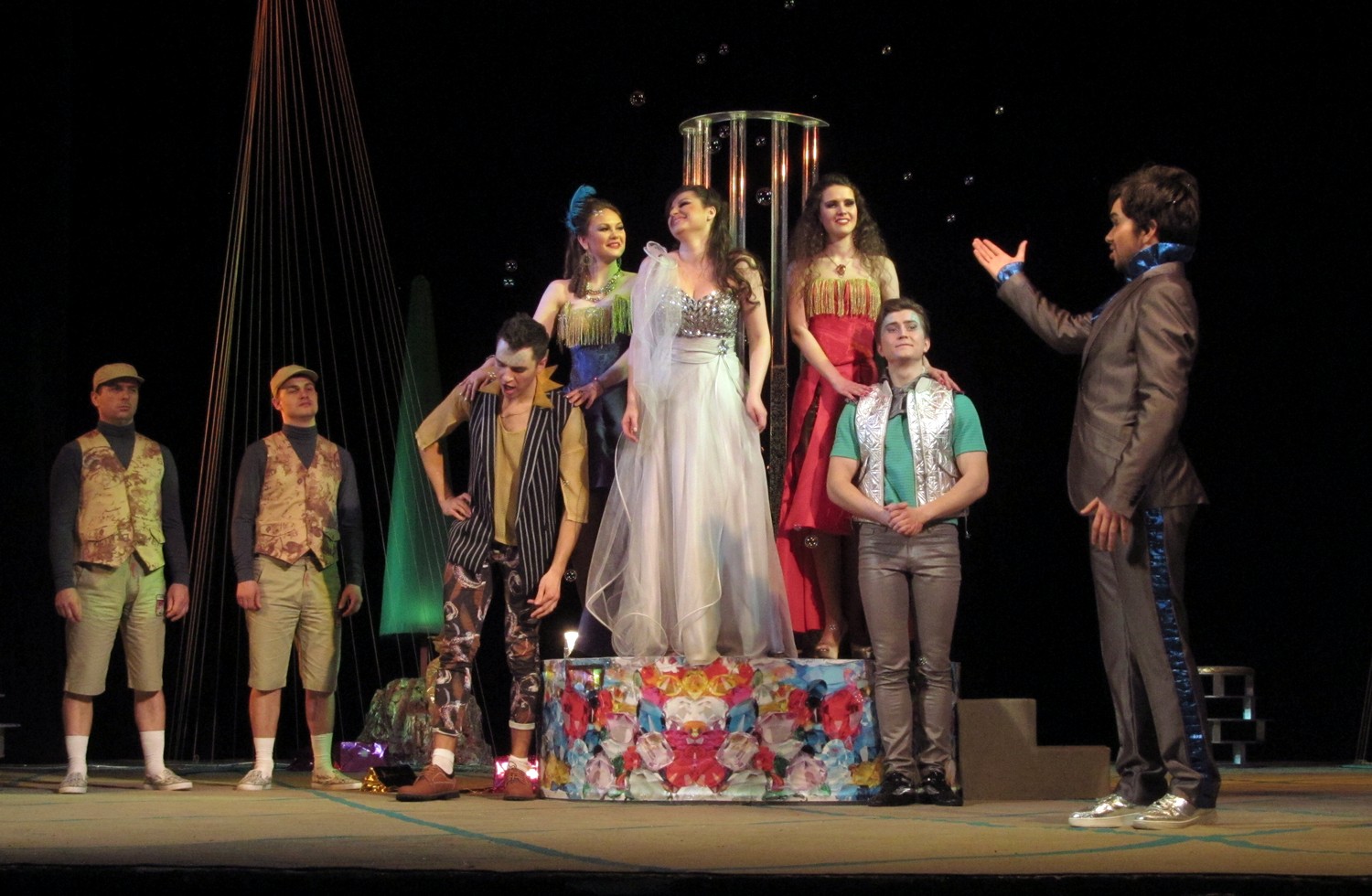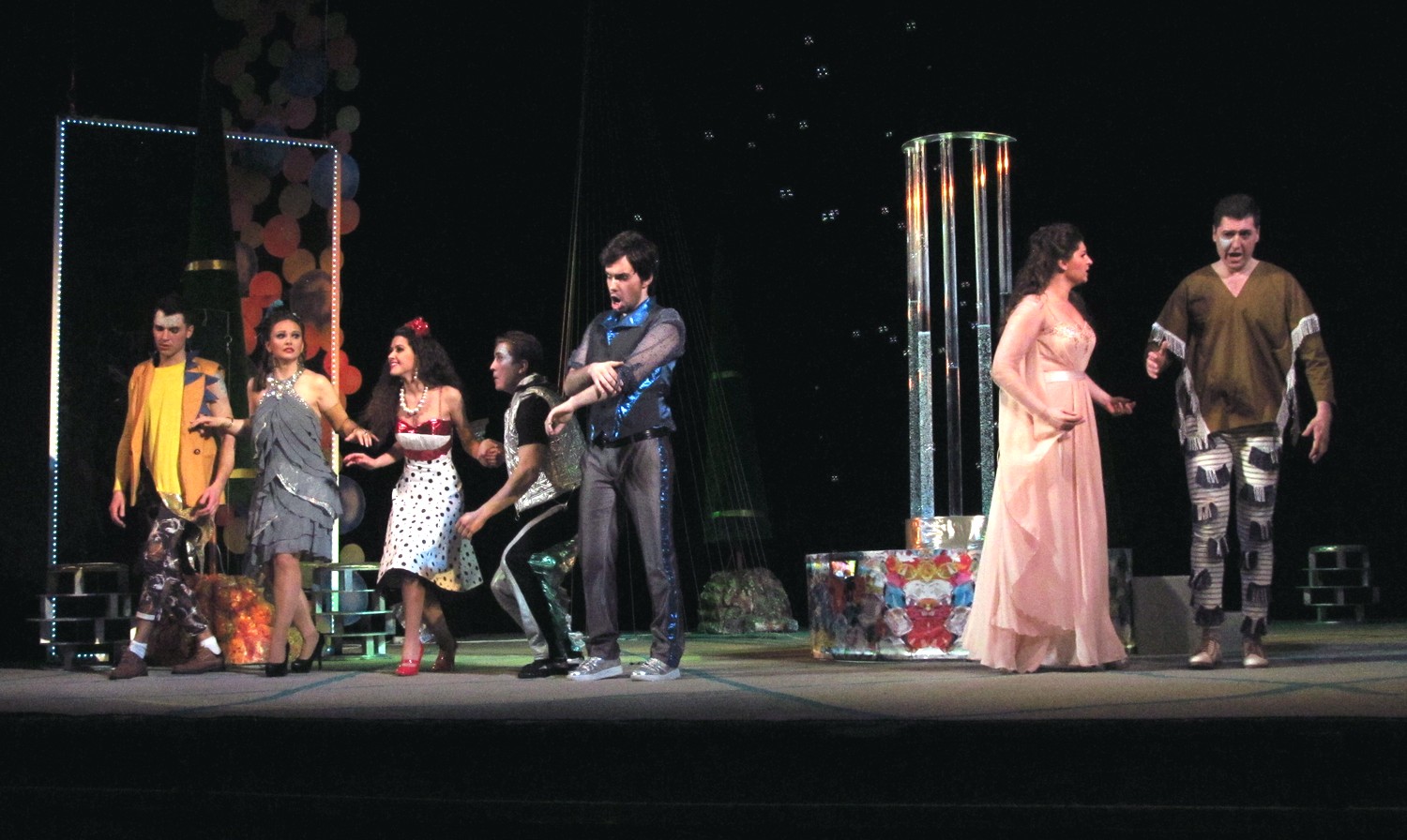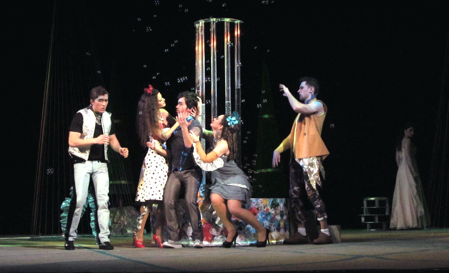 Цього разу постановники і виконавці створили новаторську виставу із сучасними декораціями та костюмами. Дія відбувається ніби у акваріумі, а на сцені молоді люди асоціюються з рибками. Але от якщо у перших спектаклях позаду сцени плавали ще й рибки, то останнього разу їх винесли кудись над кулісами, і там вони дещо втратили свою привабливість. Загалом, аналогії з підводним світом та його мешканцями виглядають досить вдало та додають цій постановці родзинку.