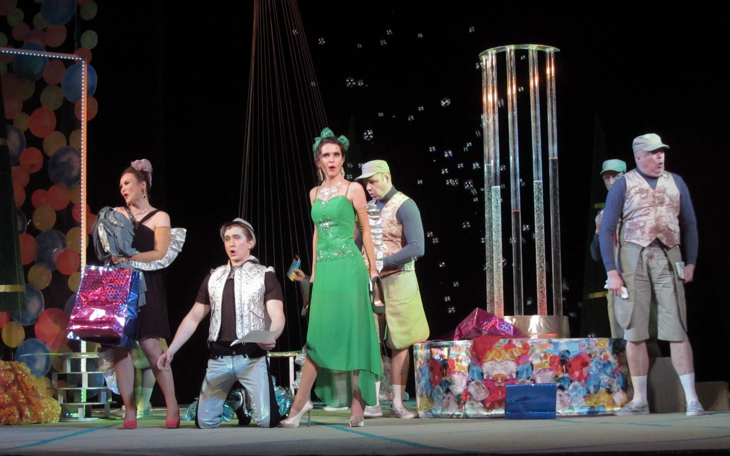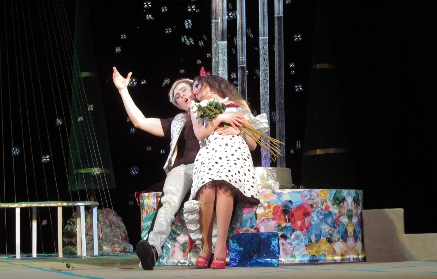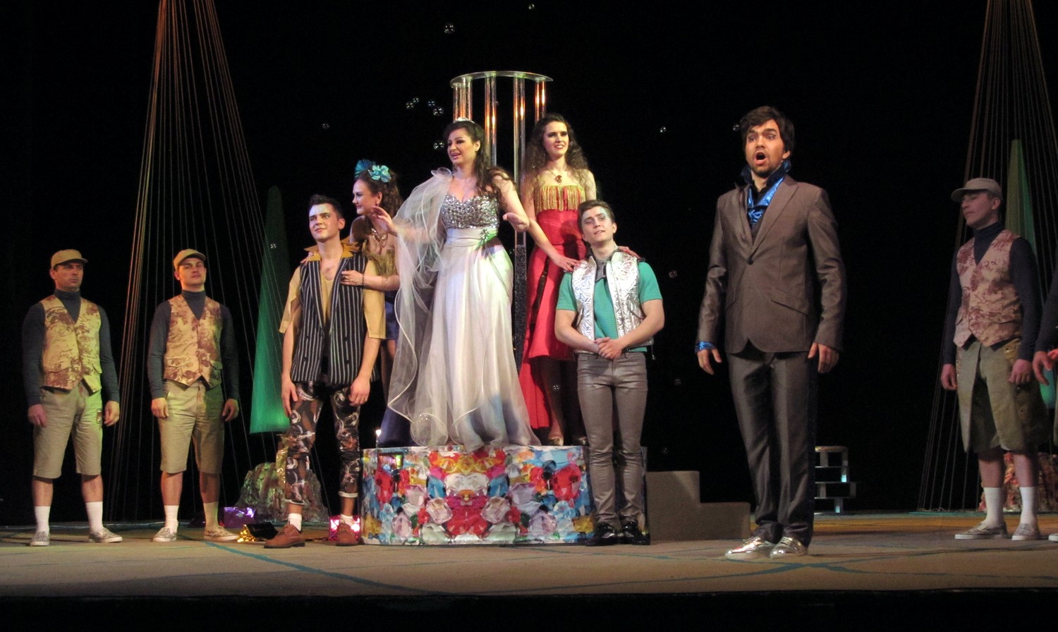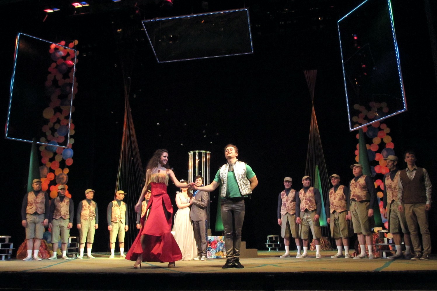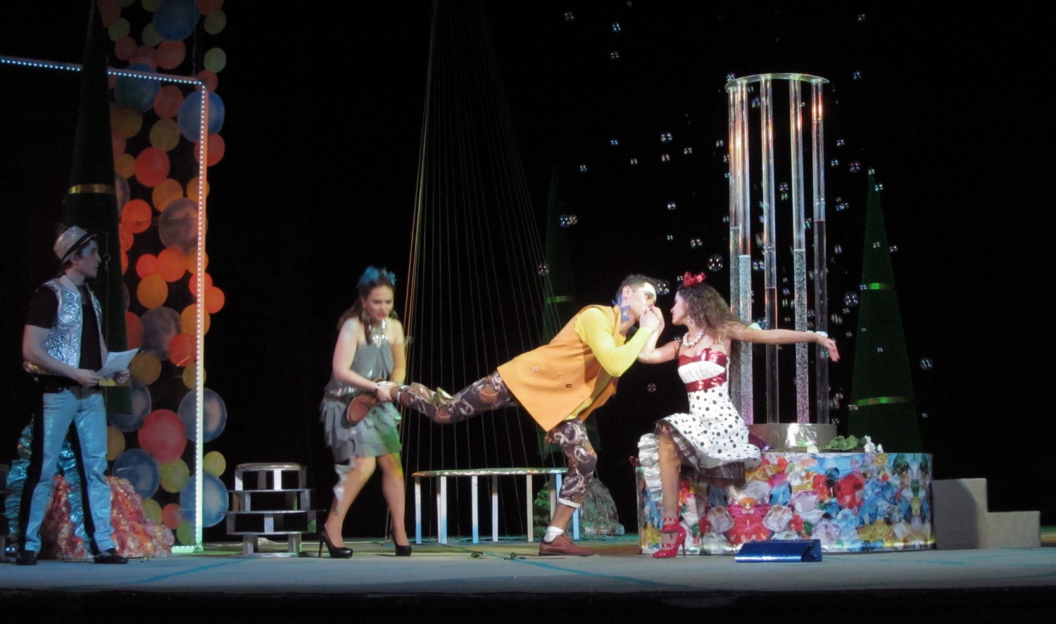 Цього разу постановники і виконавці створили новаторську виставу із сучасними декораціями та костюмами. Дія відбувається ніби у акваріумі, а на сцені молоді люди асоціюються з рибками. Але от якщо у перших спектаклях позаду сцени плавали ще й рибки, то останнього разу їх винесли кудись над кулісами, і там вони дещо втратили свою привабливість. Загалом, аналогії з підводним світом та його мешканцями виглядають досить вдало та додають цій постановці родзинку.