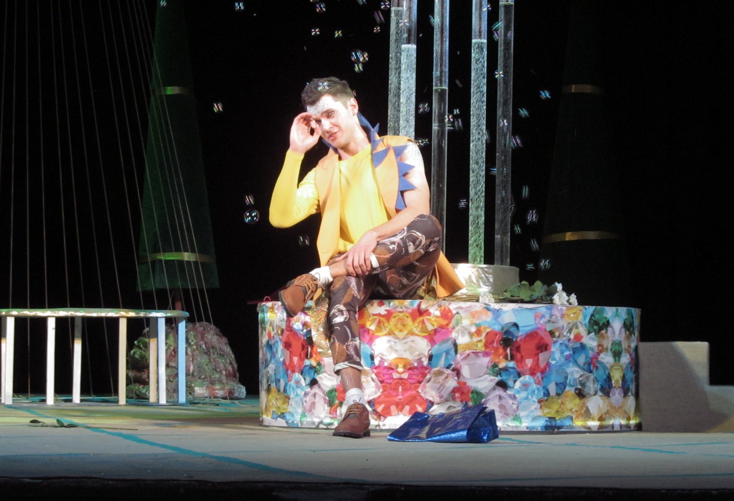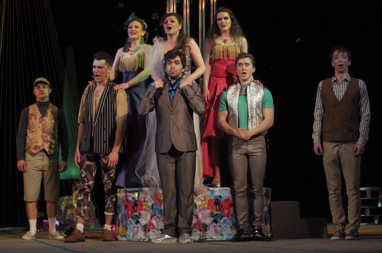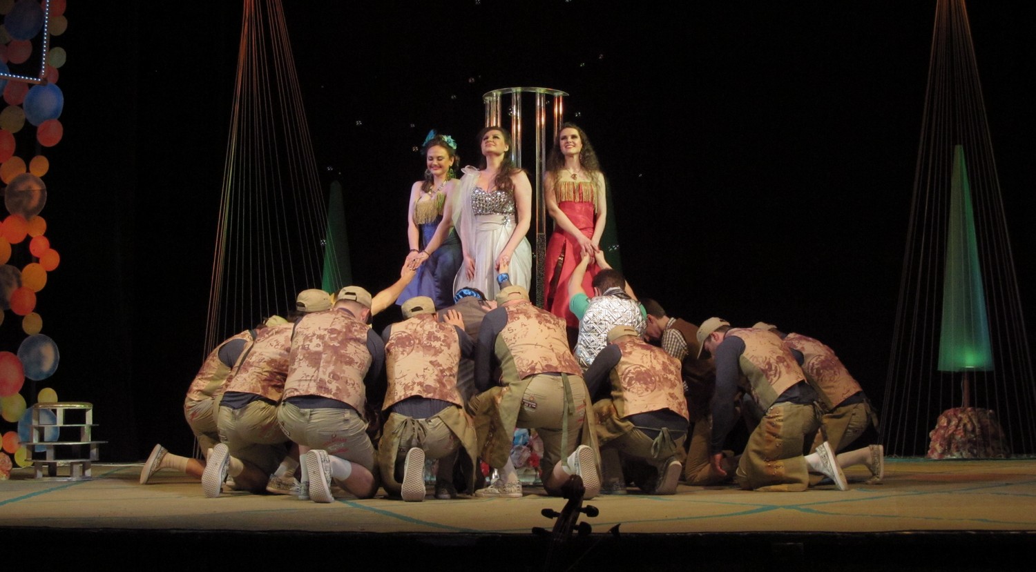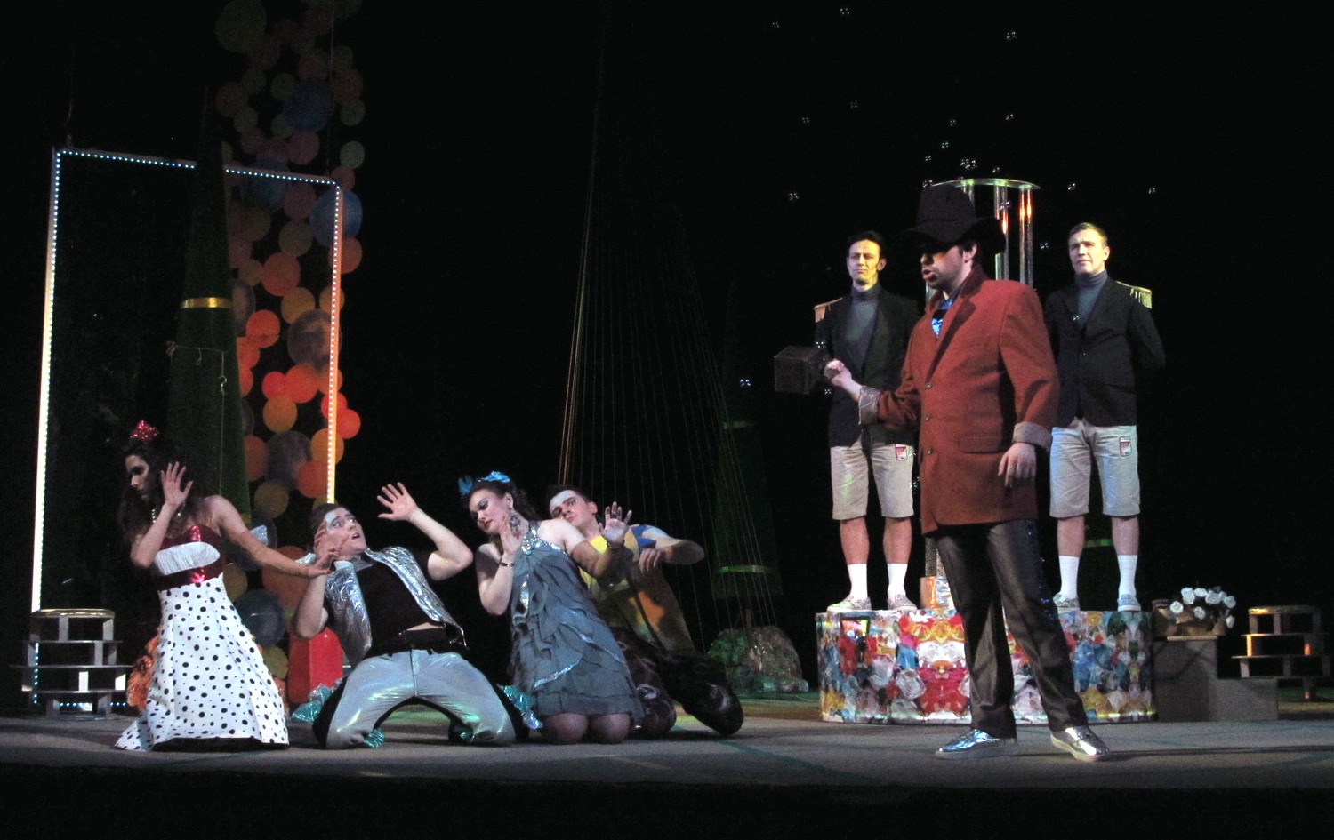 Цього разу постановники і виконавці створили новаторську виставу із сучасними декораціями та костюмами. Дія відбувається ніби у акваріумі, а на сцені молоді люди асоціюються з рибками. Але от якщо у перших спектаклях позаду сцени плавали ще й рибки, то останнього разу їх винесли кудись над кулісами, і там вони дещо втратили свою привабливість. Загалом, аналогії з підводним світом та його мешканцями виглядають досить вдало та додають цій постановці родзинку.