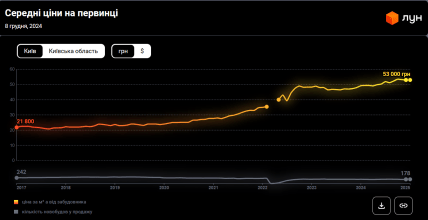 У грудні 2024 року відзначається відчутне зростання цін на квартири в новобудовах. На даний момент, за квадратний метр у новому будинку просять в середньому 53 000 гривень.