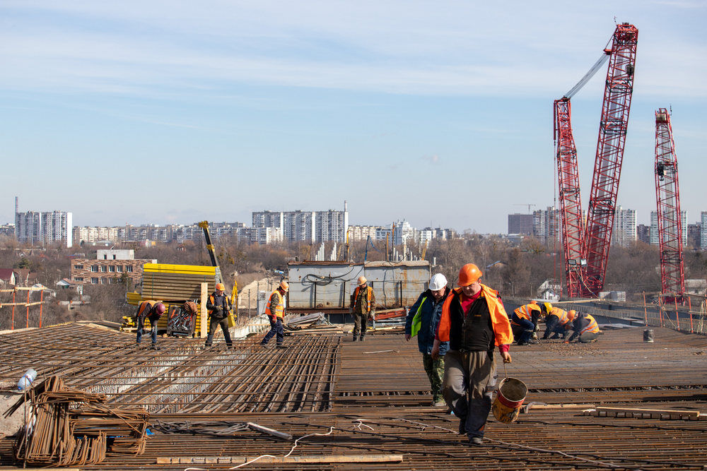 На початку літа розпочнуть встановлювати ванти на арочну конструкцію мосту. Далі повністю демонтують нижню частину тимчасових опор і міст «стане» на своє місце.