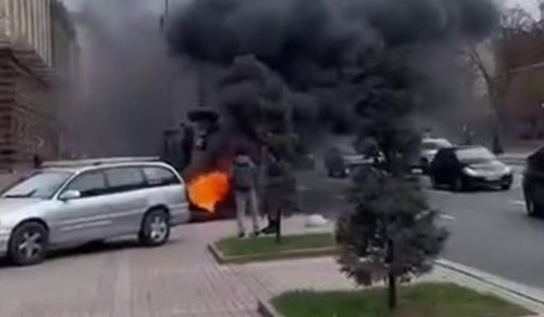 Напроти Київської міської державної адміністрації на вулиці Хрещатик у центрі Києва вранці 23 жовтня 2025 року влаштували пожежу.