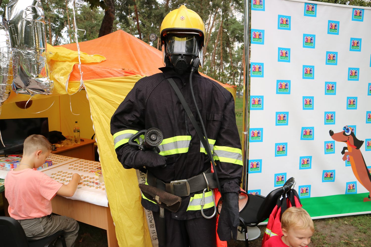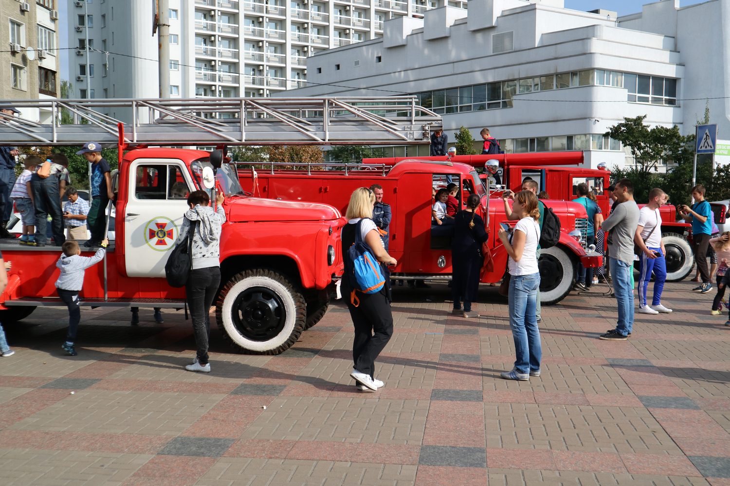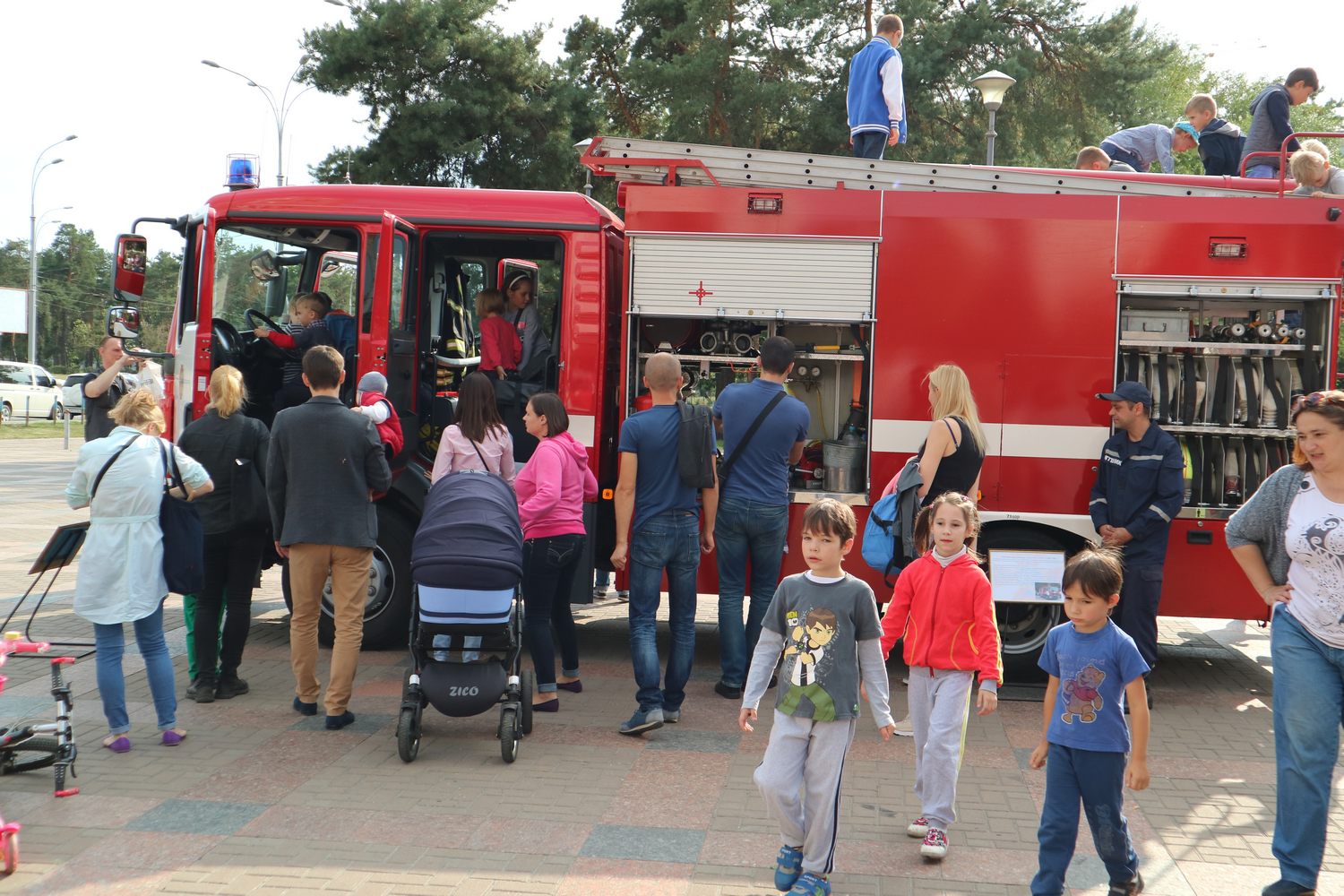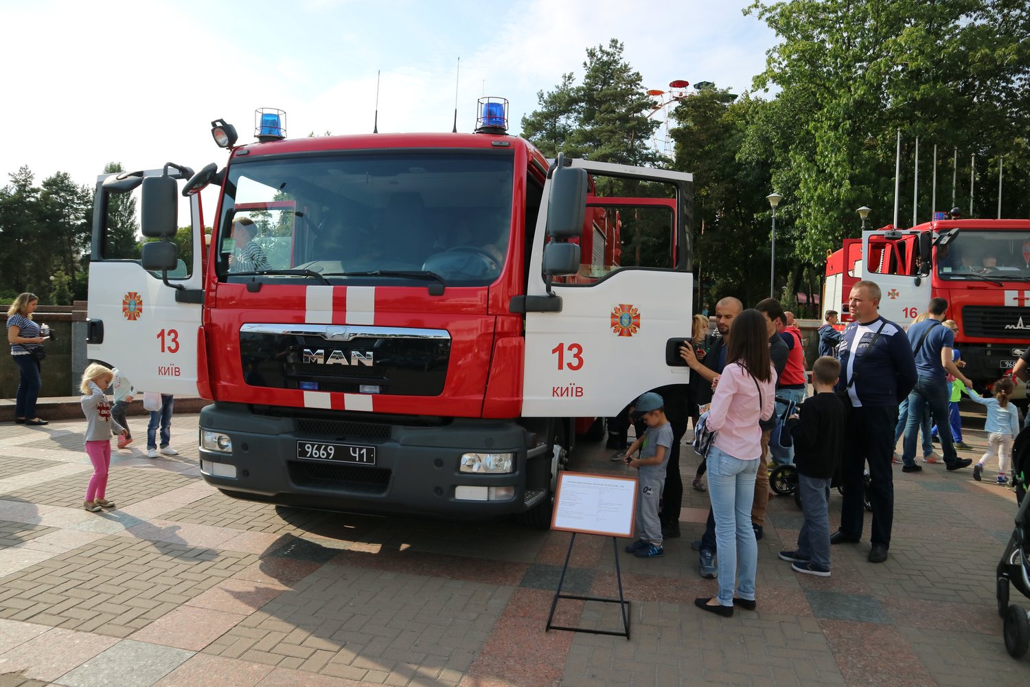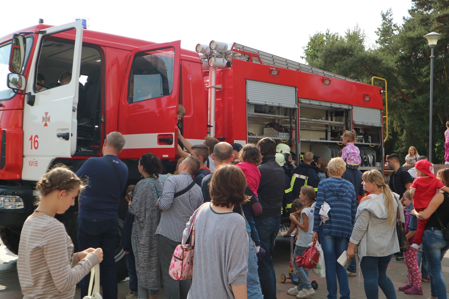 У Парку Перемога дійсно було на що подивитися, бо на головній алеї розгорнулося справжнє пожежне містечко. Кияни та гості столиці змогли поринути у простір пожежних авто, вогню і води, на мить увійти до світу пожежно-рятувальної справи і побачити зсередини, чим же насправді «дихають» вогнеборці.