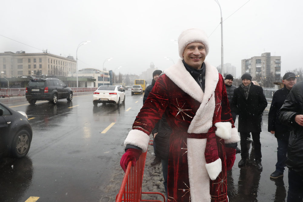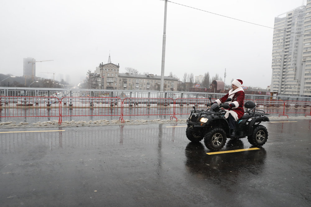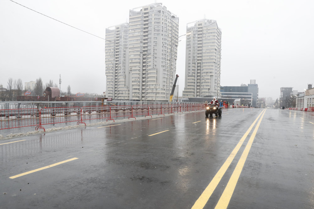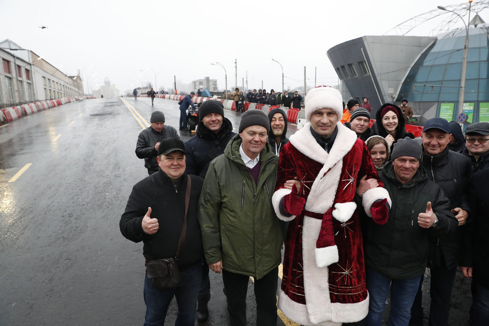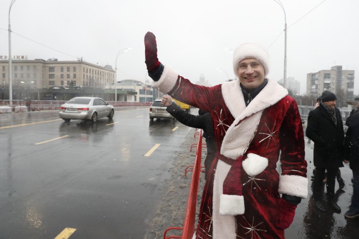 Мер Києва Віталій Кличко у костюмі Санта Клауса (чи може Діда Мороза) відкрив технологічний проїзд Шулявським шляхопроводом. Він першим проїхався мостом на квадроциклі. А за ним вже поїхав і автотранспорт.