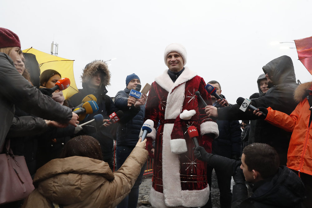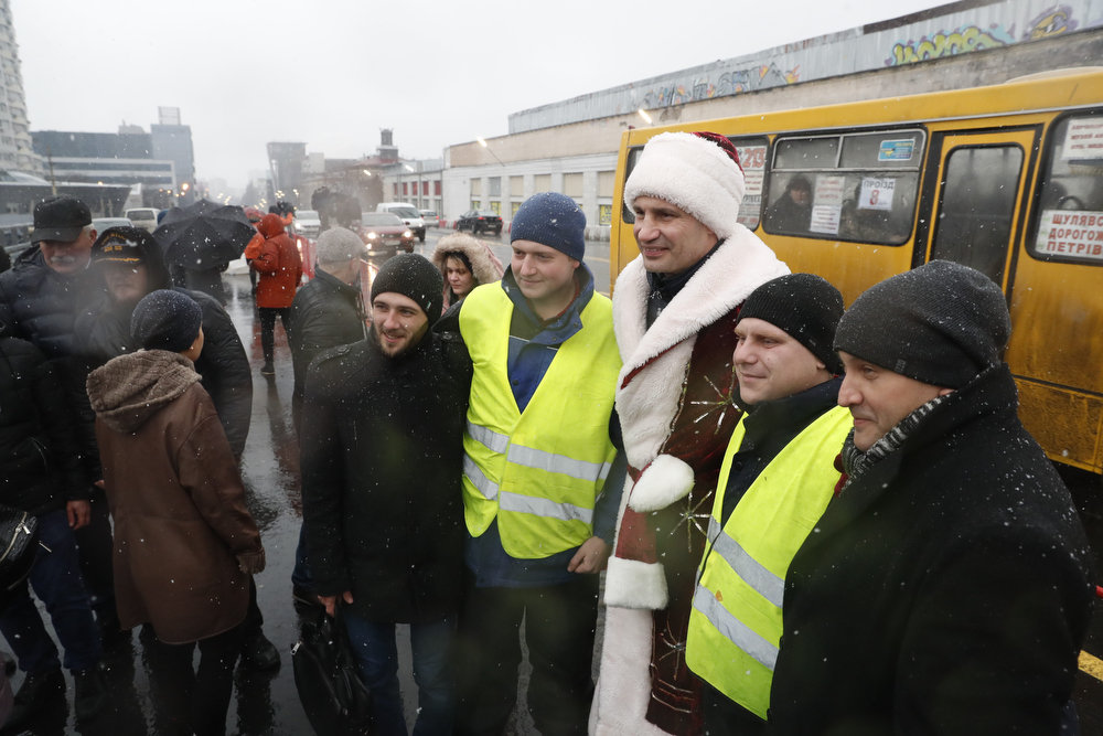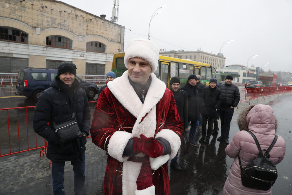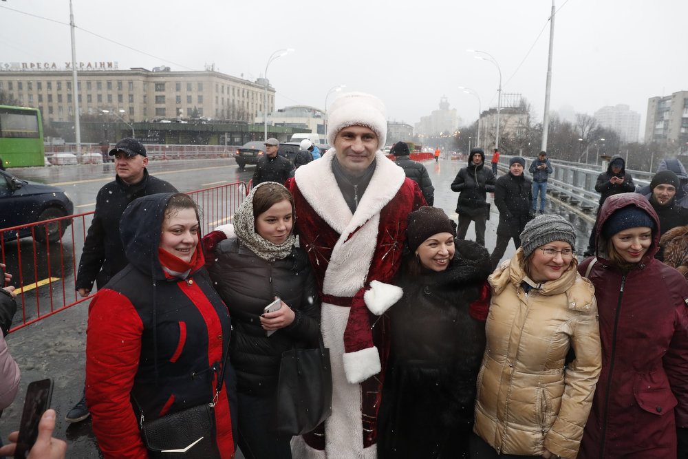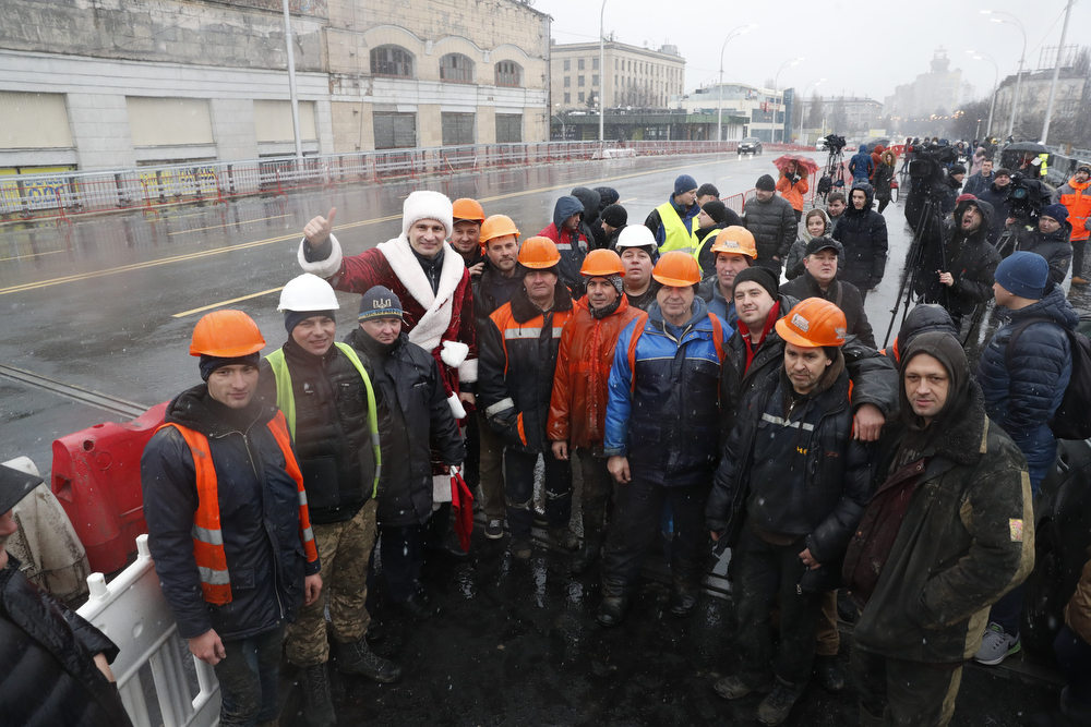 Мер Києва Віталій Кличко у костюмі Санта Клауса (чи може Діда Мороза) відкрив технологічний проїзд Шулявським шляхопроводом. Він першим проїхався мостом на квадроциклі. А за ним вже поїхав і автотранспорт.