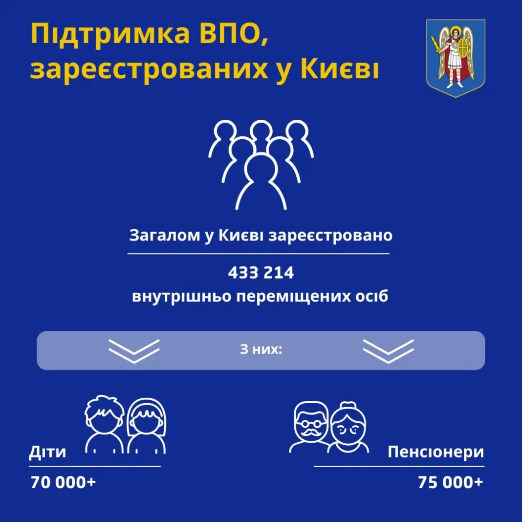 У перший рік повномасштабного вторгнення у столиці зареєструвалися 170 тисяч переселенців, і з того часу їхня кількість зросла втричі. З моменту реєстрації вони отримують доступ до всіх міських послуг — медицини, освіти, соціальної підтримки і пільгового проїзду. Найбільші видатки міста пішли на харчування дітей переселенців у школах і дитсадках — 200 мільйонів гривень.