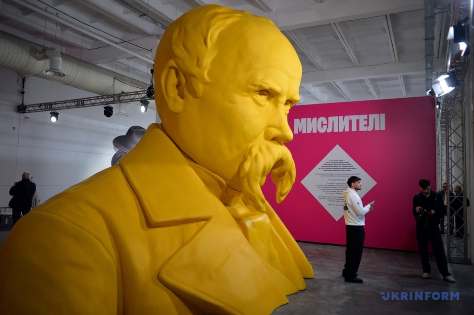 У Києві відкрилася інтерактивна виставка Ukraine WOW / Фото: Євген Котенко, Укрінформ На виставці також представлений «Золотий м’яч» Андрія Шевченка, три трофеї «Євробачення», сукня від FROLOV для світової попзірки Сабріни Карпентер та капелюх від Руслана Багінського для Мадонни.