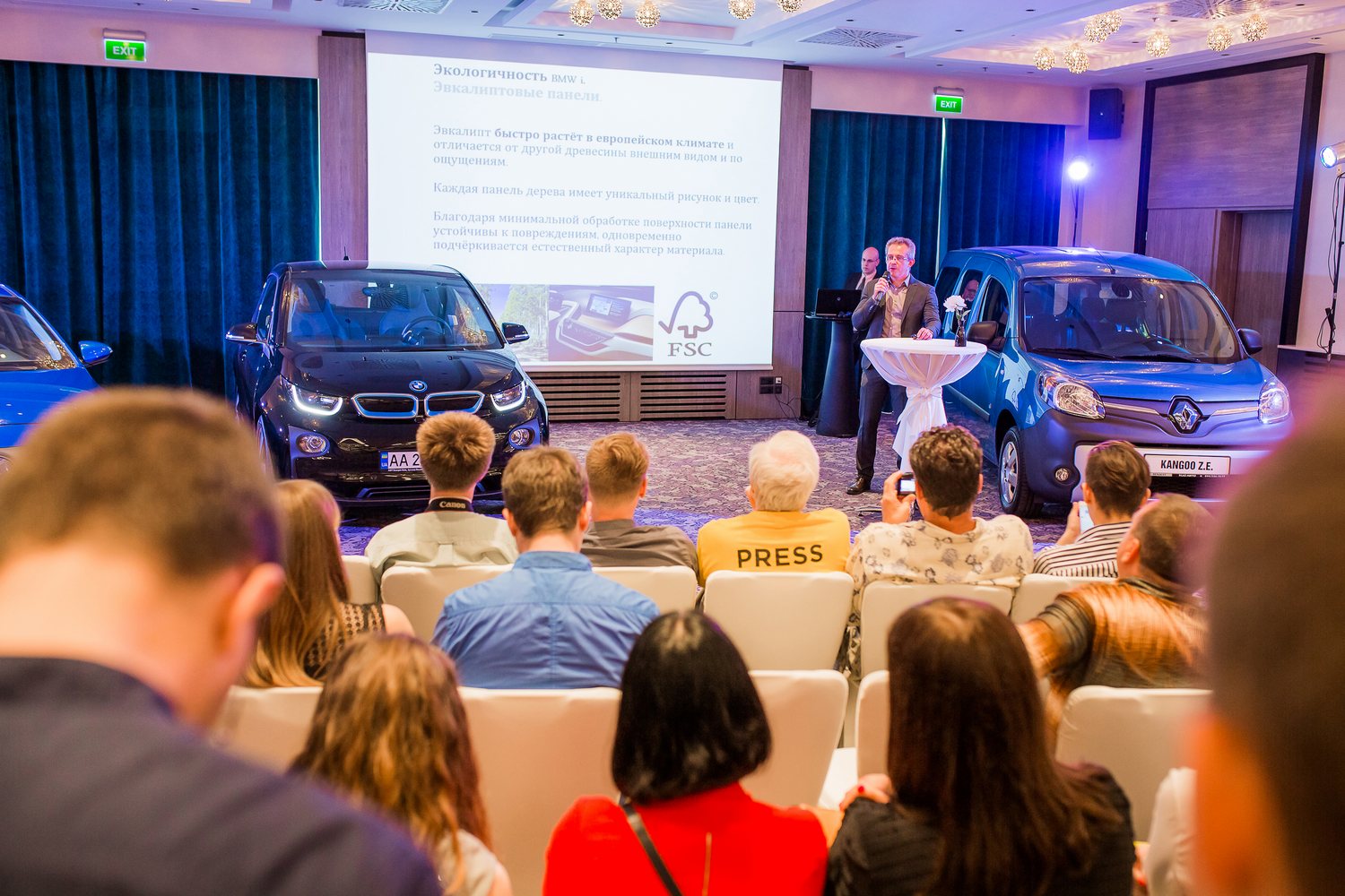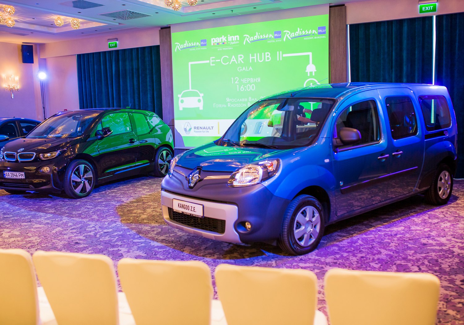 12 червня прямо у конференц-залі готеля Radisson Blu Hotel у рамках E-CAR HUB ІІ були представлені моделі електромобілів BMW i3, Renault Kangoo Z.E. та Hyundai IONIQ Electric.