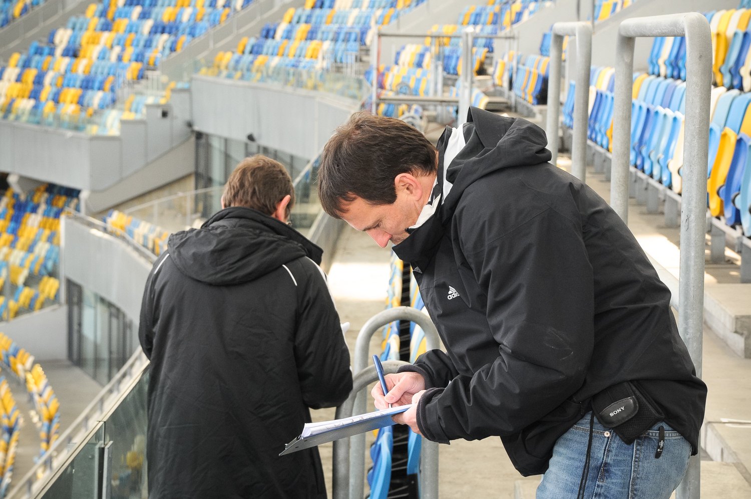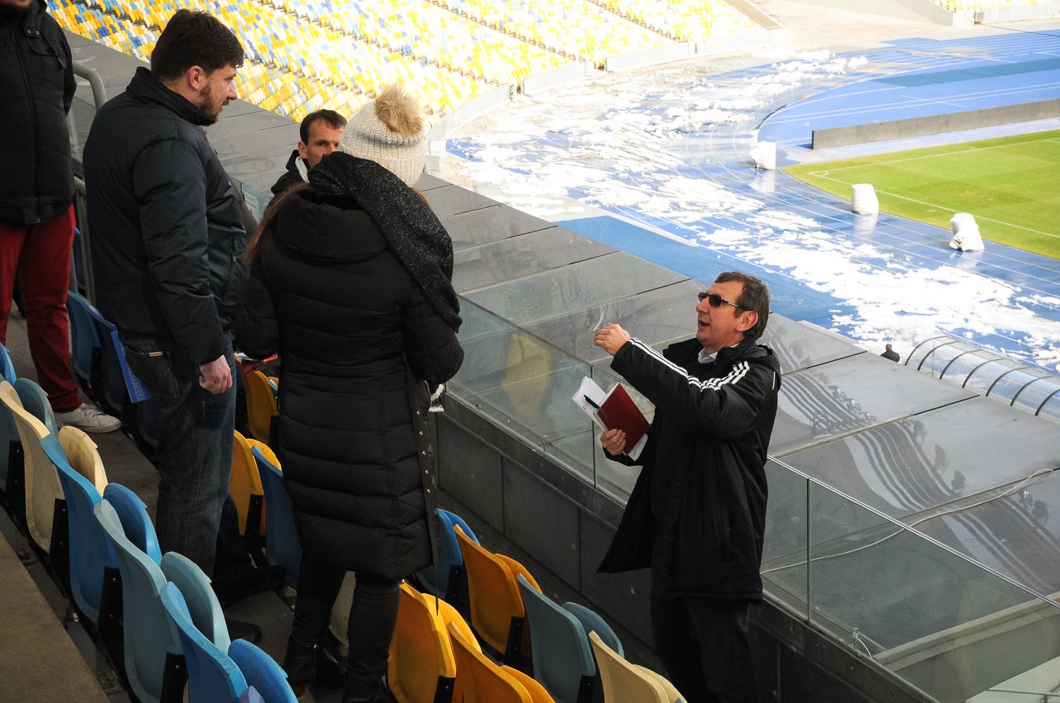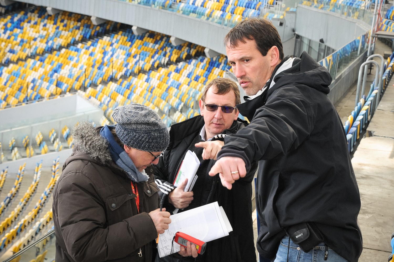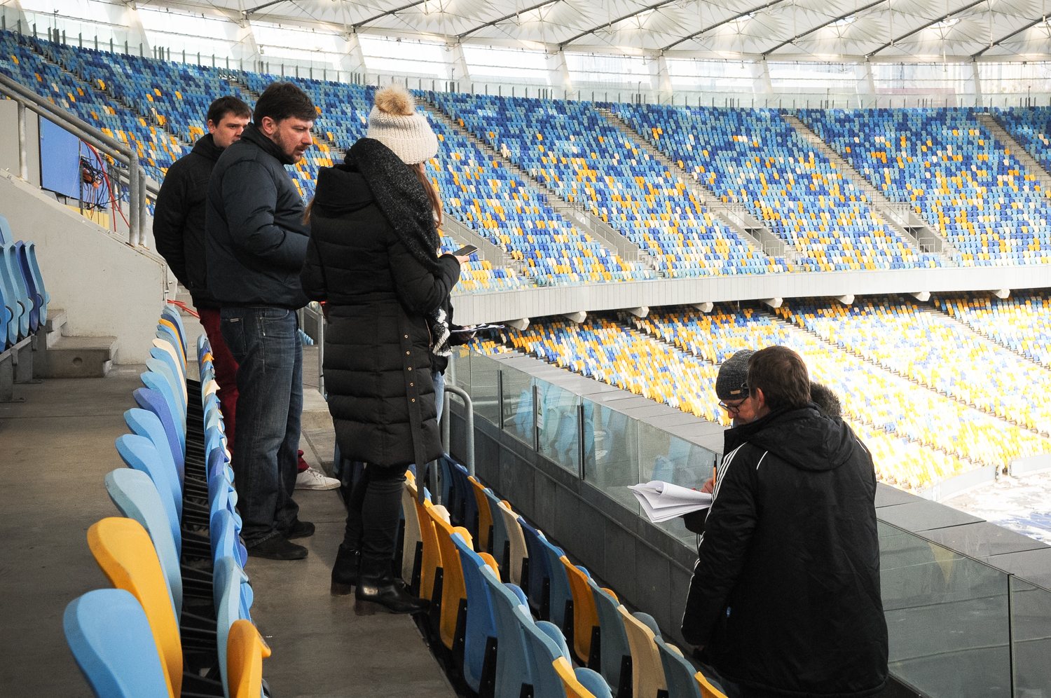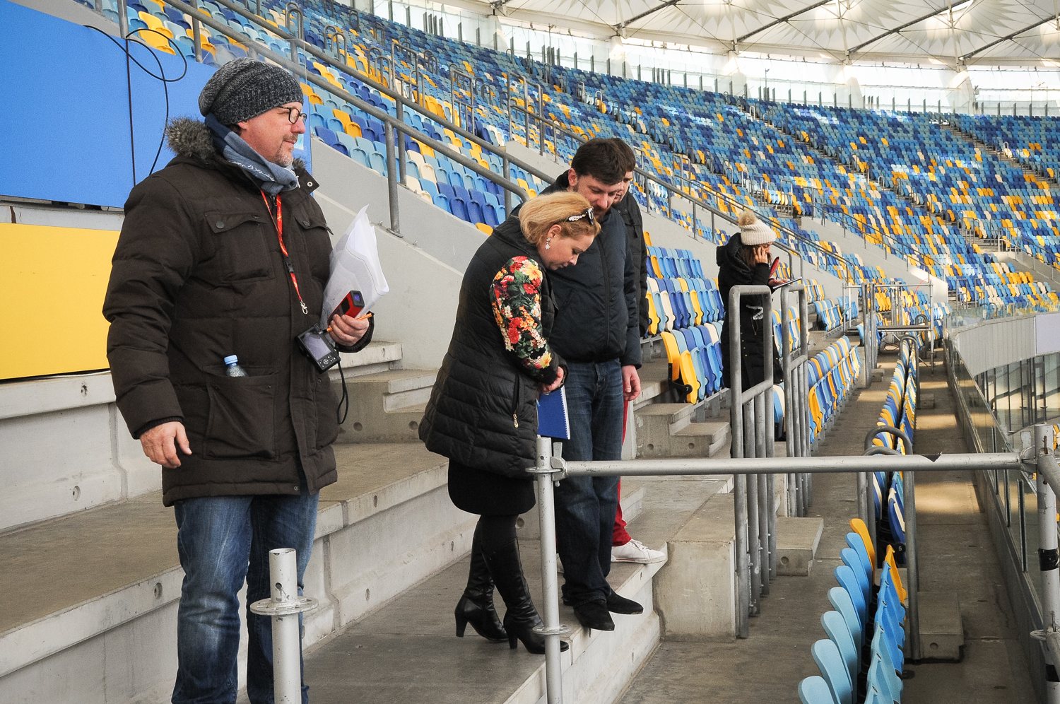 Делегати УЄФА разом з представниками Федерації футболу України досліджують інфраструктуру арени для підготовки до такого важливого матчу.