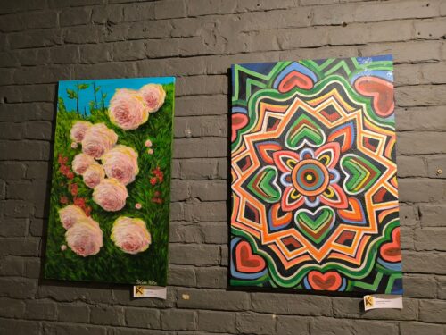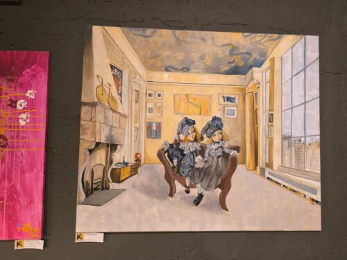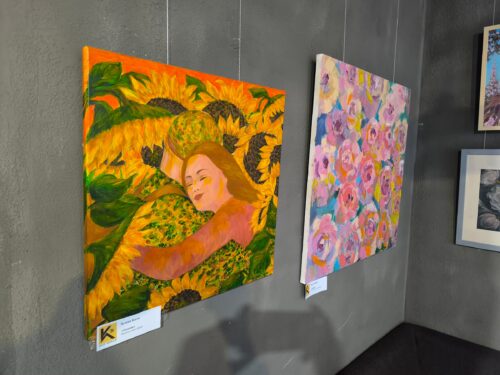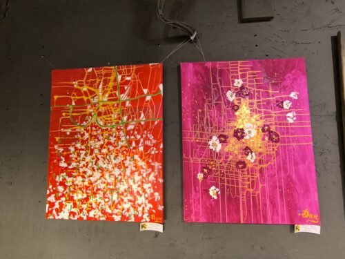 Абстракція: Глибокі червоні та пастельні рожеві відтінки, що передають емоційні сплески. Це експонуються дві роботи (“Почуття” та “Сповнення бажань.Фуксія”) юного друга нашого портала, наймолодшого професійного художника України, так, це – Данило Ноздря, чия життестверджуюча творчість вже непогано знайома читачам Київ1, бо ми вже не перший рік є інформаційним спонсором цього непересічного юного дарування.