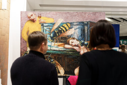 В ЦУМі відкрилася виставка «Мистецтво Всюди» від культурного бренду Vivid Fusion. На відкриття завітали колекціонери, митці, представники бізнесу, медіа та публічні гості, зокрема солістка гурту KAZKA Олександра Заріцька, актор Олександр Рудинський та акторка Марія Рудинська-Заниборщ.